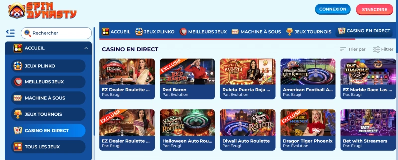 La version française de Spin Dynasty met en avant plus de 4 000 jeux. Ce n’est pas une petite ludothèque, et cela place le site dans la catégorie des casinos qui veulent couvrir plusieurs profils de joueurs, pas uniquement les amateurs de machines à sous.